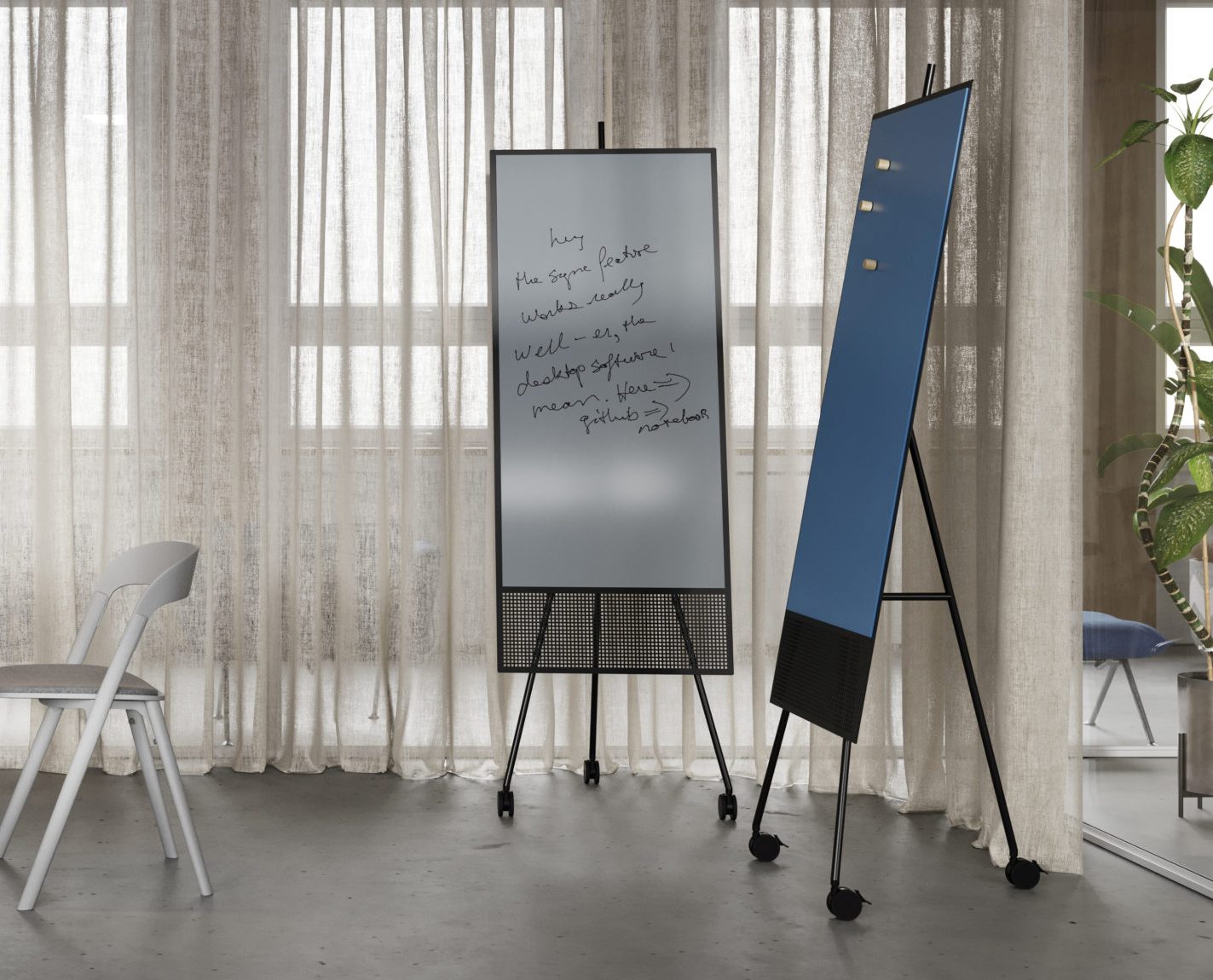Vi har tavler som kan stå, hænge og flyttes rundt på, i forskellige materialer og design, der passer ind i alle miljøer.