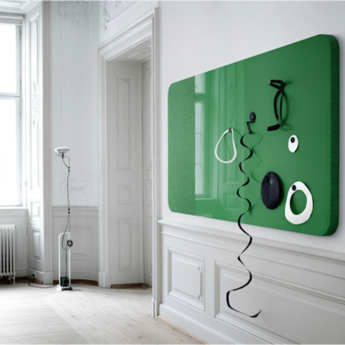 Skrivetavle i glas med bløde former og stofbeklædt ramme. Findes med overflade helt i glas eller i kombination med stofbeklædt lydabsorberende overflade. Fabric Wall er en alsidig tavle med elegant udtryk. Vi har udvalgt 6 forslag til farvekombinationer.